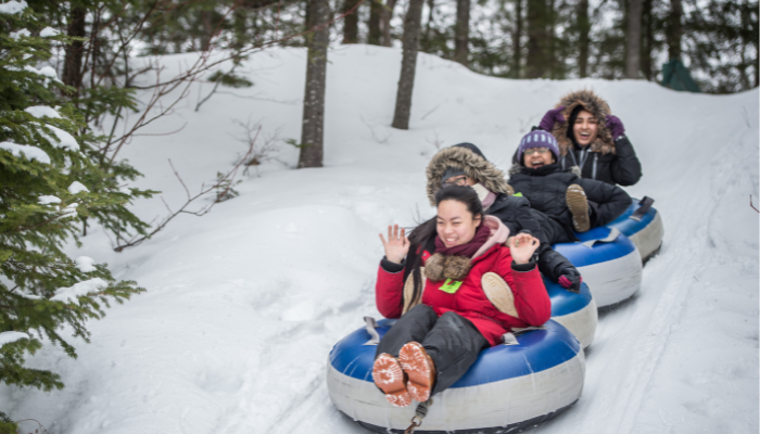 Glissade sur tube: Dans un décor hivernal de toute beauté, dévalez l’une de nos deux pentes pour glissade sur tube.